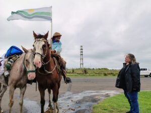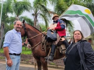 El Presidente Municipal, Mariano Lacoste, junto a la Viceintendente, Maria Estela Aizaga entregaron un reconocimiento y un presente por haber cumplido con este sueรฑo de cabalgar hasta su pueblo.