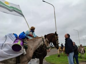 La emociรณn se sintiรณ a flor de piel mientras una gran caravana de caballos y vehรญculos lo escoltaba por las calles del pueblo, transformando su llegada en un verdadero desfile de orgullo y tradiciรณn. El destino final fue la Pulperรญa “La Tranquera”, el escenario perfecto donde se lo recibiรณ con el calor de su gente entre choripanes, charlas y mรบsica.